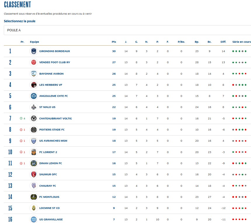 Deuxième la saison dernière, placée malgré l’absence de joueurs clés cet automne, l’équipe vendéenne accueille elle avec ambition le leader bordelais malgré l’absence de son avant-centre, meilleur buteur de la poule, Jérémy Billy.